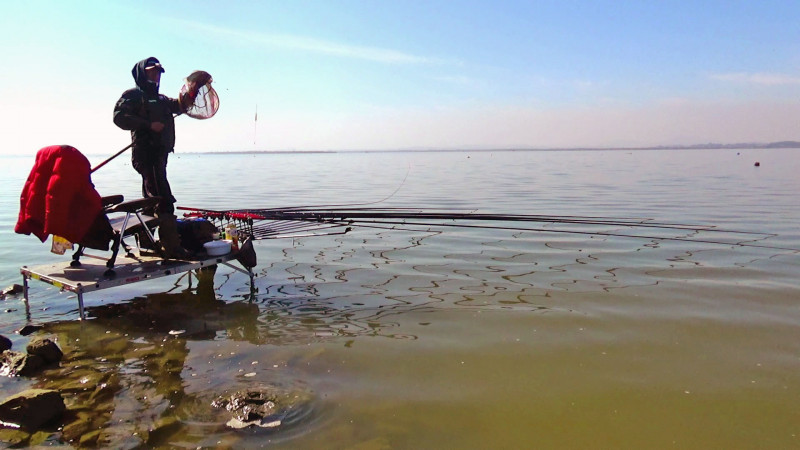 너울성 파도로 낚시대 던지기가 어렵고 붕어들 입질이 끊긴다.